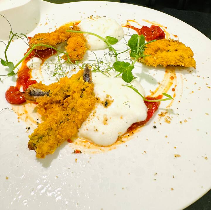 Lolu hambo lokudla lugxile ezidleni zasolwandle futhi lubandakanya ukunambitha i-tartare yezimfanzi enomayonesi we-lime kanye ne-polenta eqhakazile, kanye namaqebelengwane amancane amnyama e-sepia anamaqanda esiswini. Njengesiqalo, kukhona i-creamy buffalo mozzarella, i-anchovy ethosiwe, i-salsa eluhlaza kanye netamatisi elungisiwe, futhi njengesiqalo esikhulu, i-risotto enomoya we-shrimp.