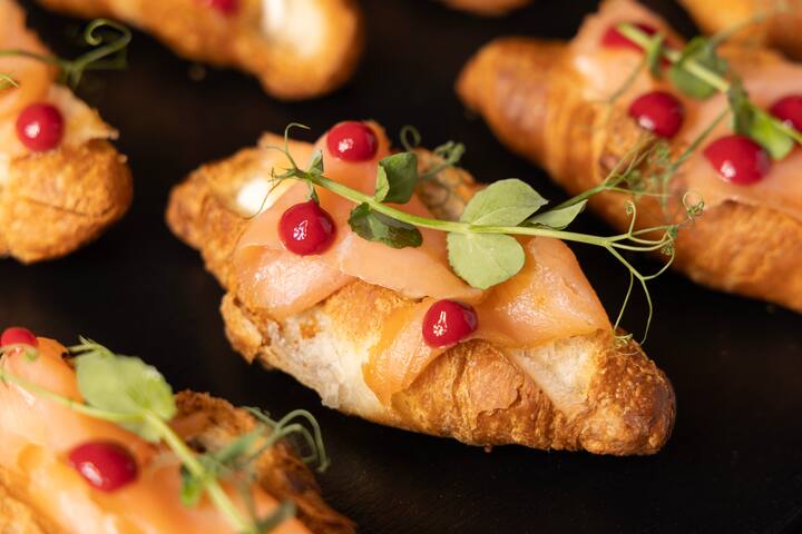 Phakathi kwezinto ezimnandi ezinikezwayo kukhona i-panettone nama-croissant enziwe ngezandla, lawa okugcina anezinhlobo ezingenalutho, ezine-cream custard, ushokoledi namajamu, i-pain au chocolat, i-frollino enekhrimu yokubhaka nezithelo, i-bon bon enetiramisu, ama-gianduiotti kanye nebhasikidi lezithelo ezintsha. Ingxenye enosawoti iqukethe i-focaccia enesalmoni kanye ne-avocado, kanye ne-brioche enokukhishwe okuphekiwe kanye nama-artichoke. Ukukhethwa kweziphuzo kufaka phakathi i-espresso, i-macchiato noma ikhofi ende, i-cappuccino, i-orange noma ijusi yamango.