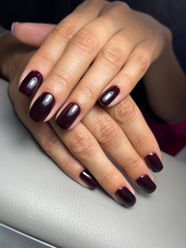 I-manicure yase-Russia enama-cuticle acwebezelayo futhi aqoshwe kahle kanye nejeli eqinile enombala owodwa