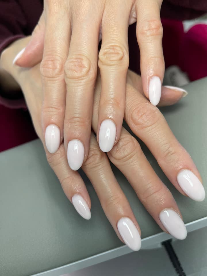 I-manicure yase-Russia enama-cuticle acotshwe kahle ne-gel eqinile noma i-base coat enedizayini