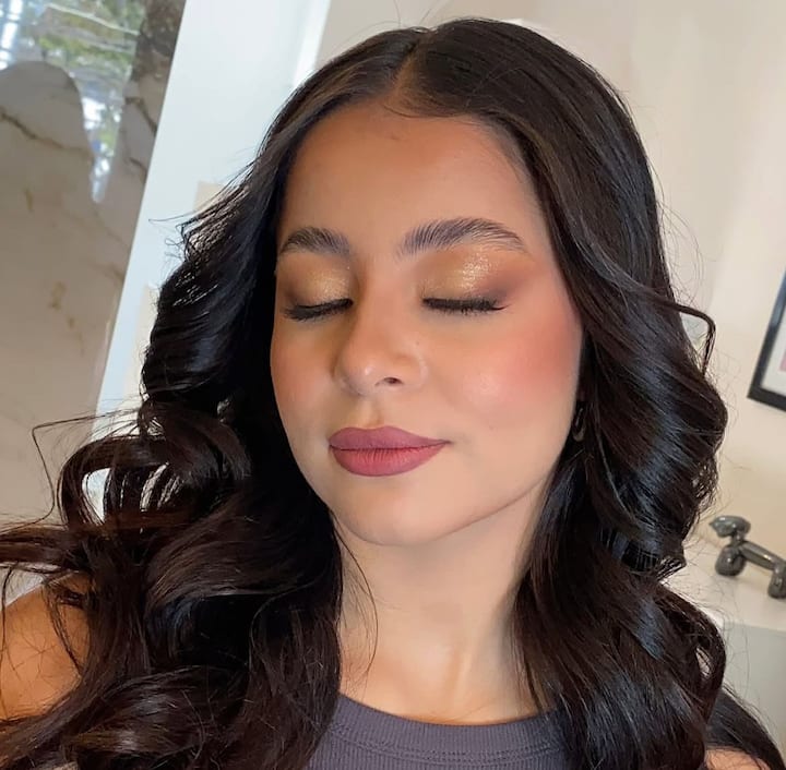 Lesi siphakamiso sakhiwe ngokulungiswa kwezinwele ezinama-wave, i-semi-recogido noma i-chongo low, imikhiqizo yezimonyo nokulungiswa kwesikhumba, iphrofayili yamabhrowu neyama-eyelashes.