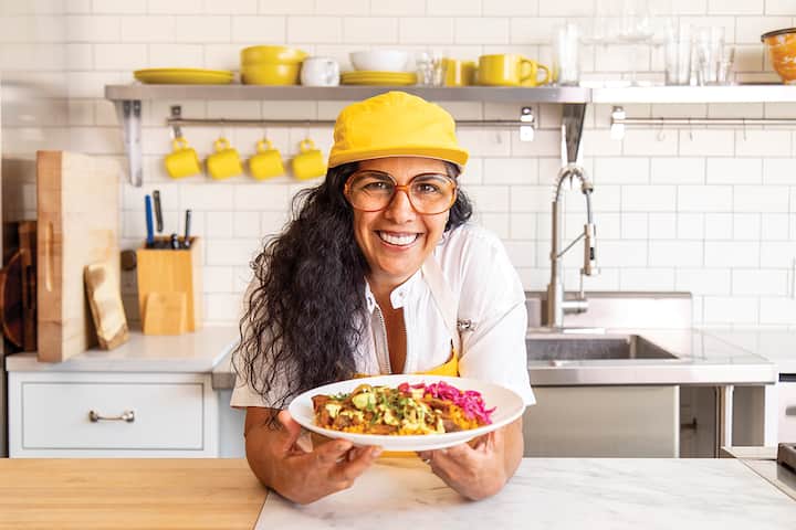 Umuntu ohlonishwayo endaweni yokudlela yase-NYC, uChef Einat usebenzisa izimpande zakhe zase-Israel ngezinongo ezicebile, ezinamakha namanambithelo angasoze walibaleka.