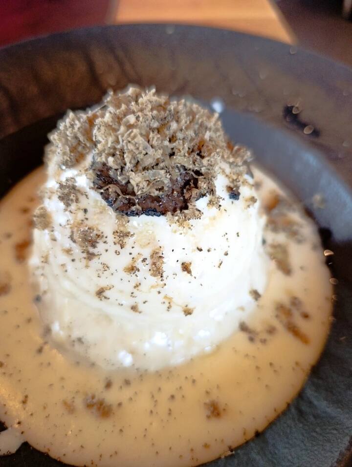 Uhambo lokudla oluya e-Tuscany ngesidlo sokuqala se-pappa al pomodoro esine-stracciatella nama-pistachio, kulandele i-pici cacio e pepe yendabuko. Isidlo esiyinhloko sinikeza i-pork loin egcwele ama-plum noshizi we-scamorza kanye namazambane e-rosemary, bese kuvalwa ngobumnandi bekhekhe likagogo.
