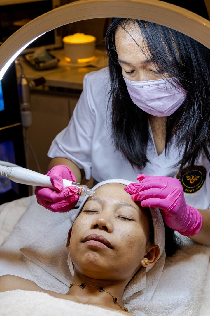 Ukuhlanzwa kobuso okunethezekile nomelaphi wase-Bali onamakhono, usebenzisa amathuluzi e-HydraFacial nemikhiqizo ye-premium ye-Dermalogica, emagumbini azimele, atholakala enkabeni yendawo yezivakashi.