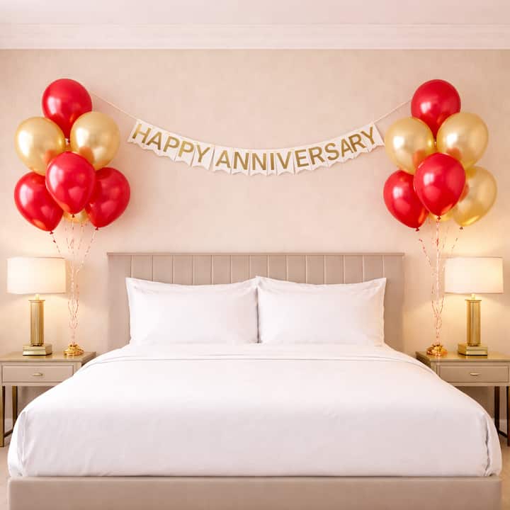 Halalisa noma yisiphi isenzakalo ngesipho esiyisimanga samabhaluni. Lokhu kulungiselelwa kuhlanganisa izinqwaba ezingu-2 zamabhaluni e-helium angu-6 (amabhaluni angu-12 esewonke) abekwe ohlangothini ngalunye lwegumbi noma lombhede, kanye nebhena enetimu. Imibala yamabhaluni ingenziwa ngokwezifiso ukuze ifane nomgubho. Kulungele ngokuphelele izinsuku zokuzalwa, izinsuku zokugubha umshado, noma izipho zokubonga ezingalindelekile emakhaya noma emakamelweni amahhotela.