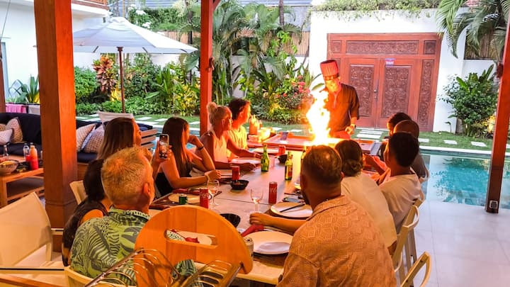 Umpheki we-hibachi oqeqeshwe e-US onolwazi lweminyaka engu-19+ ubudala. Jabulela umbukiso we-hibachi wangasese wesitayela sase-America endlini yakho—amalangabi abonakalayo, ukuxhumana okumnandi, nobusuku obungenakulibaleka.