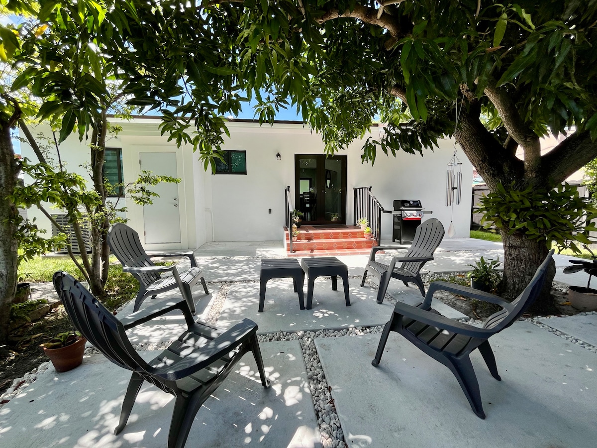 Relax in your own private guesthouse tucked into a lush tropical garden in Miami. This peaceful casita is designed for comfort and rest, with warm earthy tones, soft linens, and essentials for short or extended stays. Enjoy private access, serene green views, **tropical food-forest landscaping**, friendly neighborhood peacocks, and quick access to restaurants, cafés, beaches, and top Miami attractions — a calm escape in the city. Read our amazing reviews!