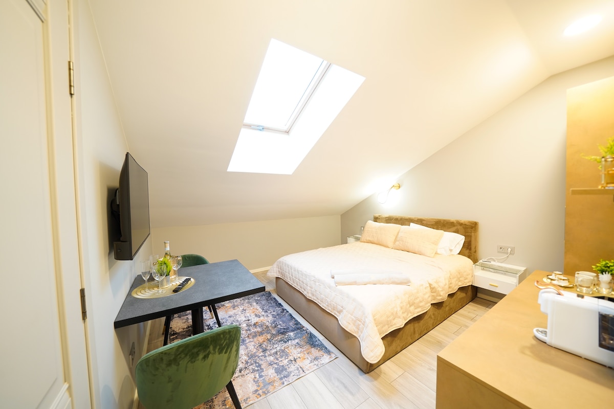 Ifulethi lihlukaniswa yindawo enkulu evamile : i-spa ephrayivethi, ene-jacuzzi yesimanje, ongabuka kuyo i-TV eyidijithali nendawo yekamelo lokulala, enombhede othokomele. Ekugcineni, ikhishi elithokomele, elinakho konke, elinemininingwane ecatshangwe kahle. Yilokho kuphela ongakudinga ekuhlaleni kwakho okujabulisayo e-Šiauliai ! Ifulethi liklanyelwe ukuphumula okuthulile, ngakho amaphathi nezindawo zokuhlala ezinomsindo aziqashiswa.