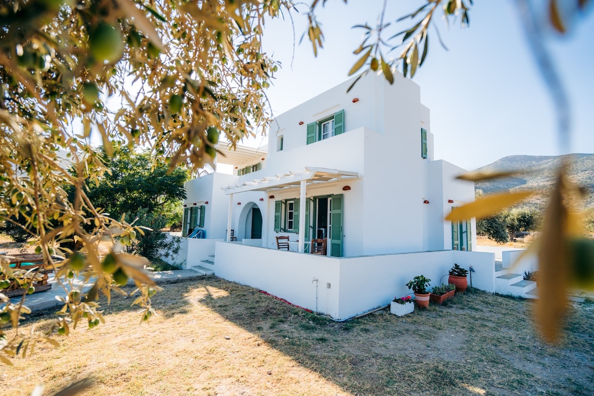 Zizwe usekhaya efulethini lethu elihle ngenhla kwebhishi lase-Fassolou futhi uhamba ngezinyawo usuka ebhishi lase-Faros nase-Glyfo Hlola indawo ephawulekayo edumile ye-Sifnos, isonto lase-Chrissopigi kusuka kuvulandi wakho futhi uyivakashele endleleni eseduze nolwandle efulethini lethu. Ifulethi linamakamelo amabili anemibhede emibili nemibhede emibili, ikhishi lesimanje elinakho konke kanye negumbi lokuphumula elikhanyiswe ilanga eline-TV. Usofa egumbini lokuphumula ungasebenza njengombhede owengeziwe