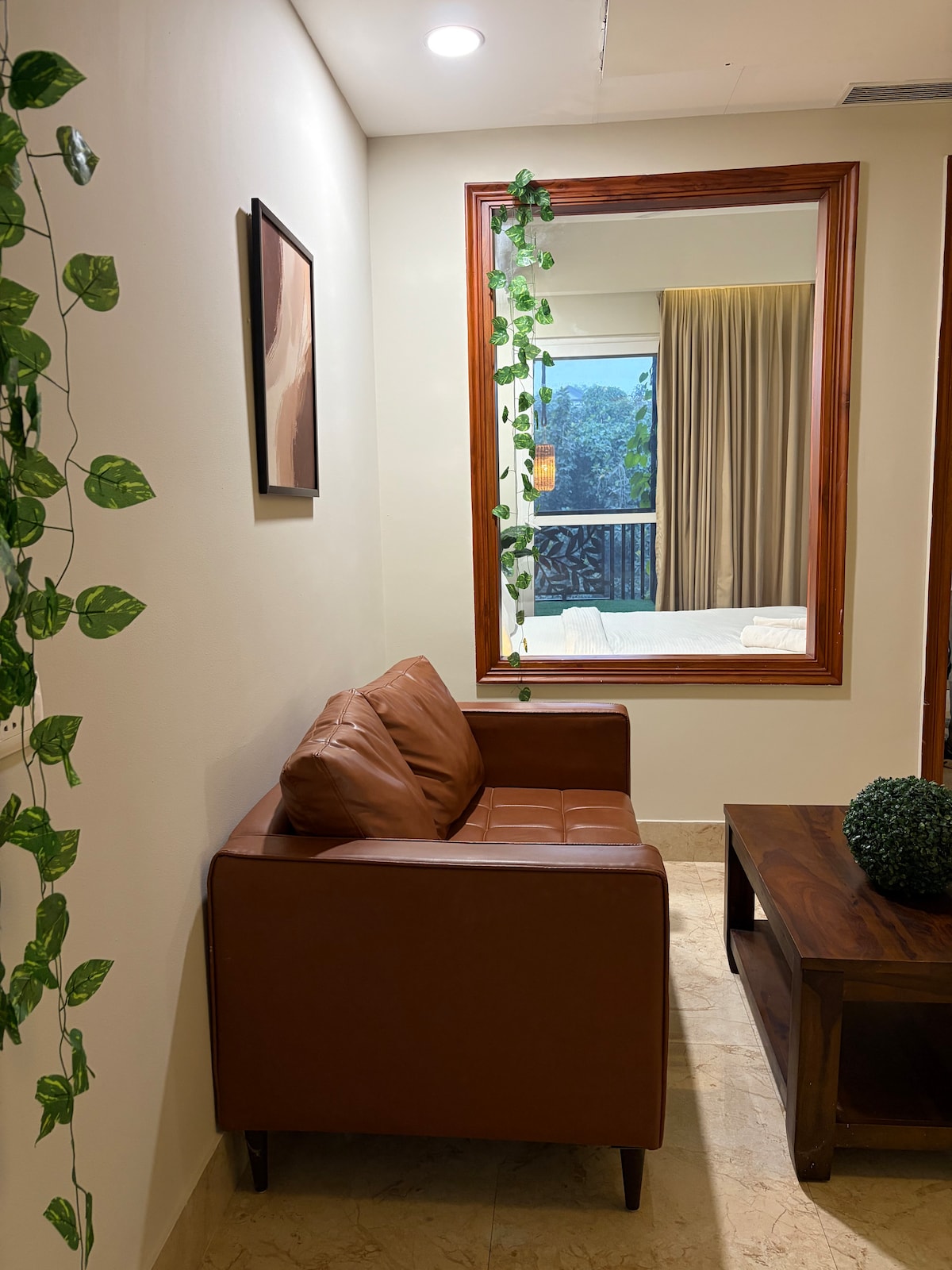 I-Stylish City Pad e-Gurgaon's Heart! Balekela kuleli fulethi eliklanywe kahle e-Sector 49, lihlanganisa ubuhle basemadolobheni nokunethezeka okuphelele. Jabulela umbhede omkhulu othokomele, ikhishi eligcwele, igumbi lokugezela elihle, indawo yokusebenzela ene-Wi-Fi kanye novulande ophrayivethi onikeza ukubukeka kwedolobha. ✦ Indawo Yokuqala Imizuzu ✔ engu-20 ukusuka esikhumulweni sezindiza i-IGI & eduze ne-DLF Cyber Hub, izitolo ezinkulu namathilomu. ✦ Ukuzingenela Nendawo Yokupaka Engenazinkinga ✦ I-Roof Top Swimming Pool (IN4 499/+ Izintela umuntu ngamunye) ✦ Ilungele izindawo zokuvakasha zothando, uwedwa, noma uhambo lwebhizinisi.