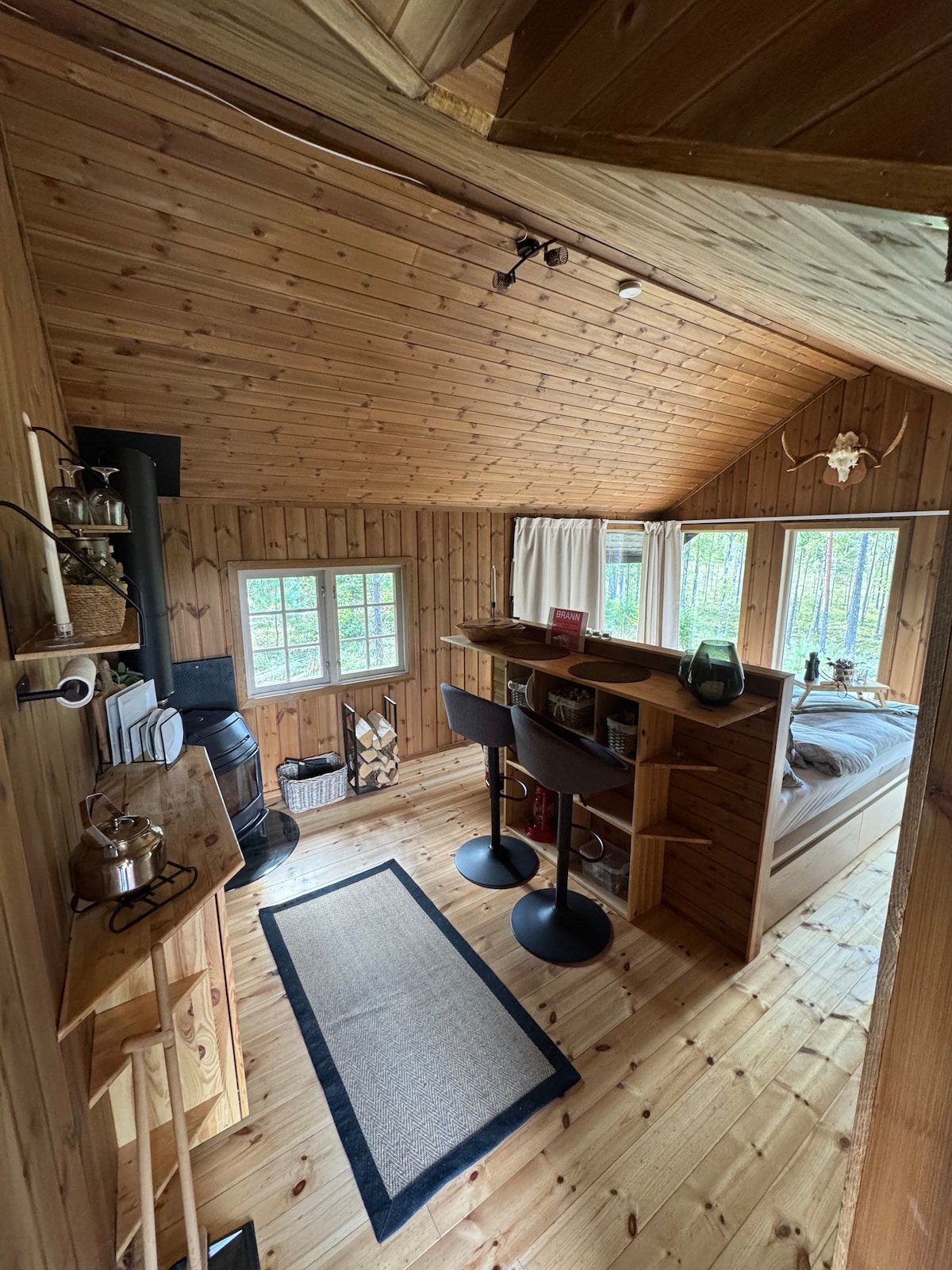 Boende där du sköter dig helt själv och kan njuta av lugnet och den fina utsikten. Bra sjösystem för SUP el båt och utmärkta vandringmöjligheter i skogarna runtom. Fullt utrustad stuga där du kan elda i kaminen inne eller tända en brasa vid grillplatsen som ligger ostört från andra grannar. För största naturupplevelsen kan ni nyttja båten som ingår. Den eldrivna motorn gör att du kan glida fram ljudlöst genom de lummiga kanalerna precis runt hörnet. 10 min från shoppingcenter