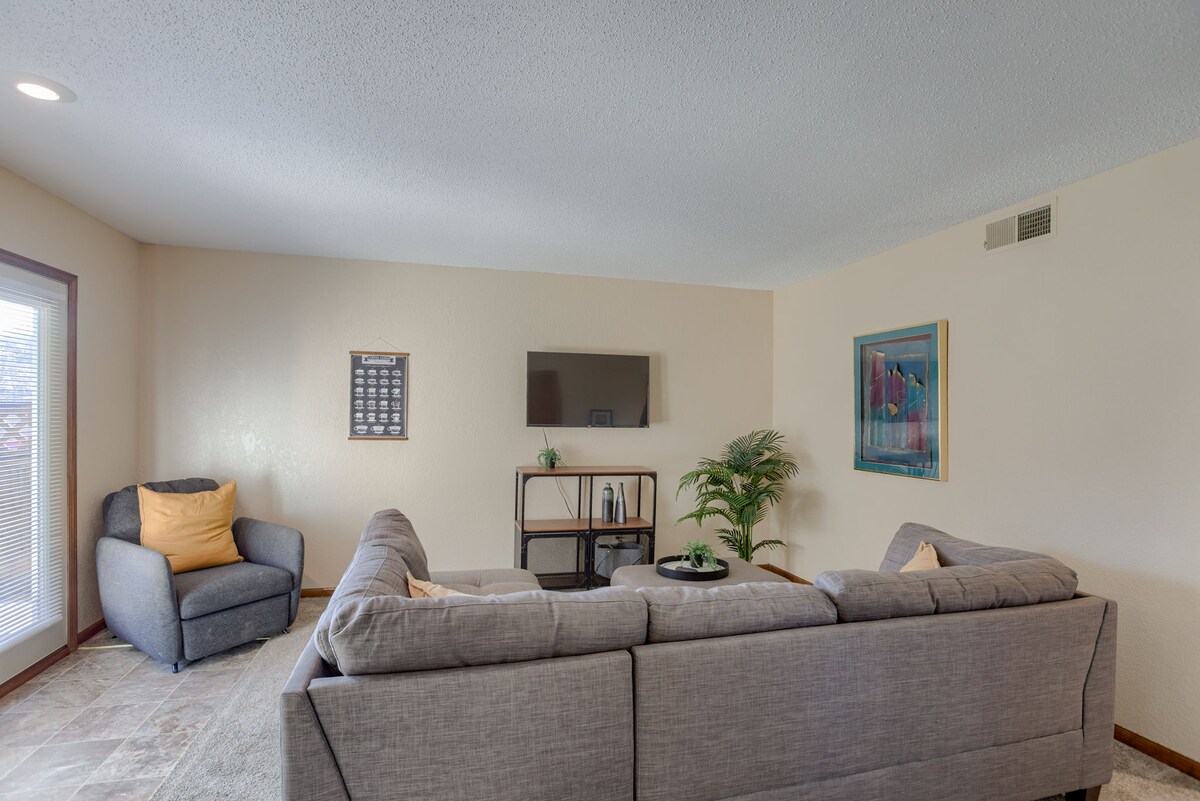 Indlu ngeyalo lonke igumbi elingaphansi. Uhlobo lwendlu lusho ikhaya lonke kodwa indlu iyigumbi elingaphansi kuphela. Ngenxa yomkhawulo wencazelo yendlu ye-Airbnb ngikhethe indlela engcono kakhulu echaza indlu. Phuma egumbini elingaphansi elinendawo evulekile enekamelo elilodwa lokugezela elinekhishi negumbi lokuphumula. Indawo inezinga elilodwa elingenazitebhisi ngaphakathi. 11mins/8.6mi from the airport, 25mins/22mi to Arrowhead, 20mins/15.3mi to KC downtown, 27mins/21.5min to KCZoo