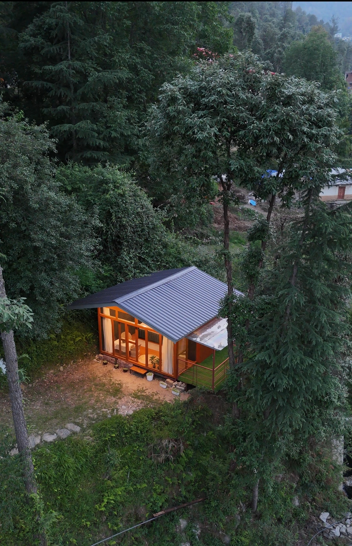Indlwana eyibhuthikhi ephindwe kabili esezigodini zaseSirmaur enendawo yokubuka umfula. Amakhilomitha angu-25 ukukhuphuka usuka e-Nahan. Amakhilomitha angu-7.5 ukusuka ku-state highway yase-Nahan Imizuzu engu-5 uhamba ngezinyawo uya emfuleni Indlwana enamakamelo angu-2 (amagumbi okugezela axhunyiwe) negumbi lokuphumula nendawo ephezulu. Ingadi eyimfihlo Imisebenzi etholakalayo - Ukuhamba Emvelweni, Iphikiniki Yomfula, Uhambo Olude Ehlathini, I-Table Tennis, I-Foos Ball, I-Cricket, I-Badminton.
