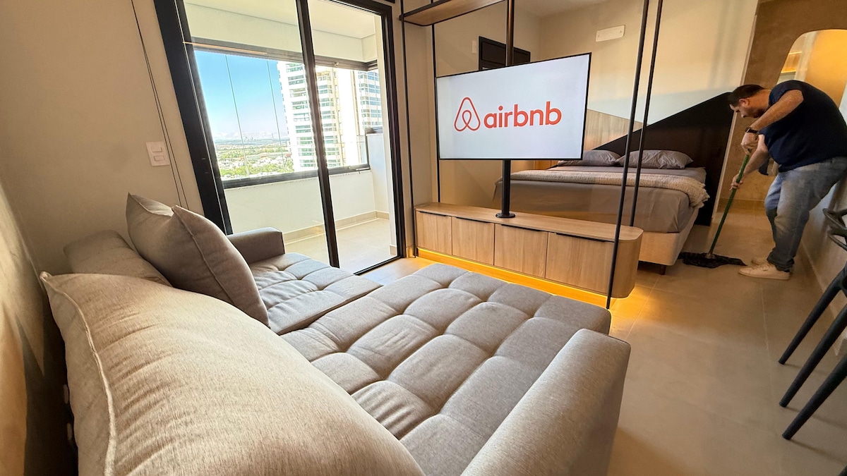 Phila okokuzithokozisa kwale smart loft ehlakaniphile, etholakala kahle, elungele labo abafuna ukunethezeka nokusebenziseka. Ifulethi elinamakhabethe, i-air conditioning, itafula lokutadisha, ifriji, i-TV. Imibhede engu-3. Inendawo yokuwasha eyiphrofeshinali endaweni ehlanganyelwayo yabo bonke abasebenzisi. - 1km ye-Iguatemi Esplanada Mall. - Imizuzu engu-7 ukusuka e-Ophthalmological Hospital (imoto) - Eduze nenxanxathela yezitolo - Imizuzu engu-3 ukusuka esikhungweni sebhizinisi sase-Bandeiras. - Phambi kwesuphamakethe yase-Correia - Okulandelayo