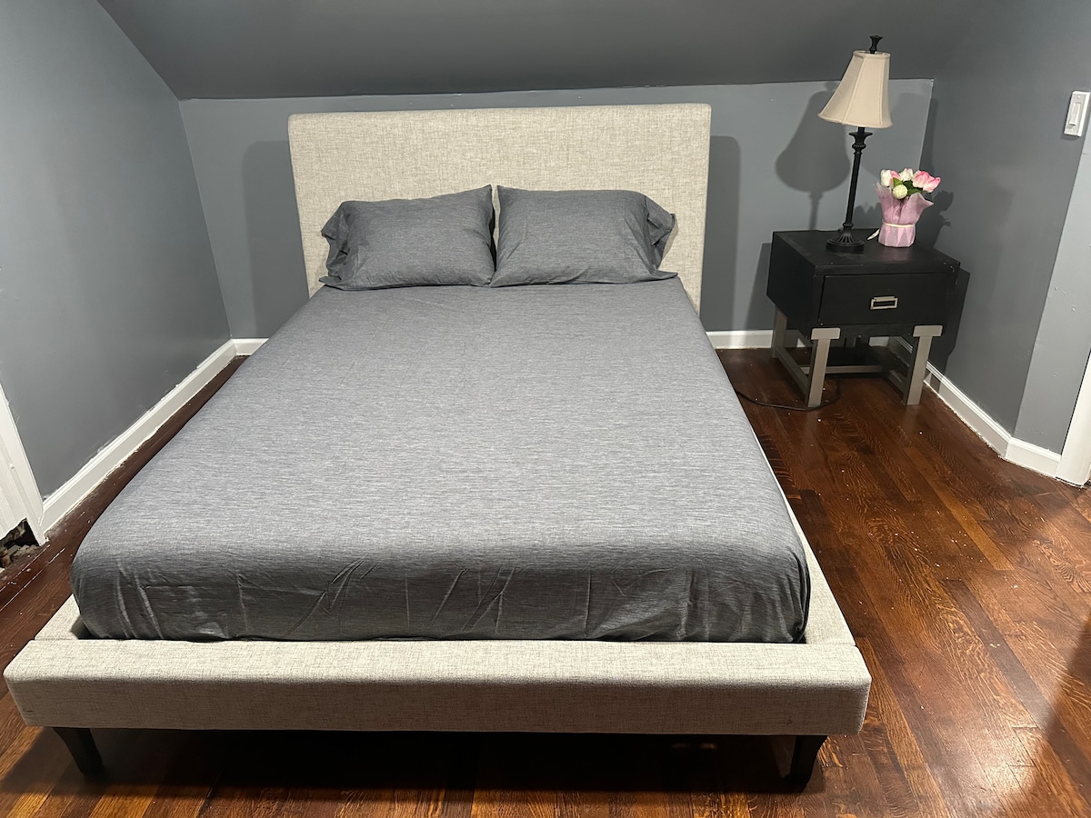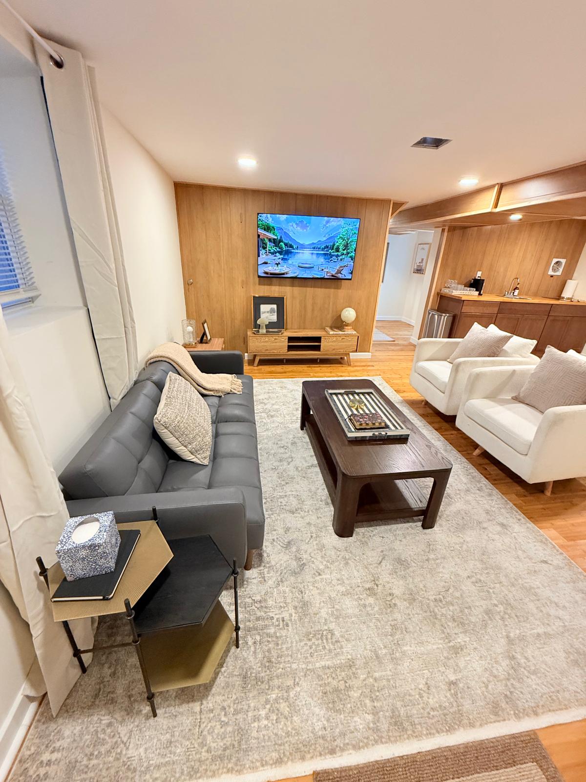 Its coziness will make you feel at home the second you step in. This cute ground floor 280 sq ft Tiny Guest Suite is Fully furnished and nicely decorated - it comes with anything you can possibly imagine. It consist of 1 bedroom 1 bathroom & a kitchen/dining/living room area Rooms' sizes: Bedroom: 10ft x 7 1/2ft LR kitchen DR area: 19ft x 10ft Bath: 40" x 80" Given how close it is from everything - It is perfect for guests who plan on commuting to the city by train or move around by Uber.