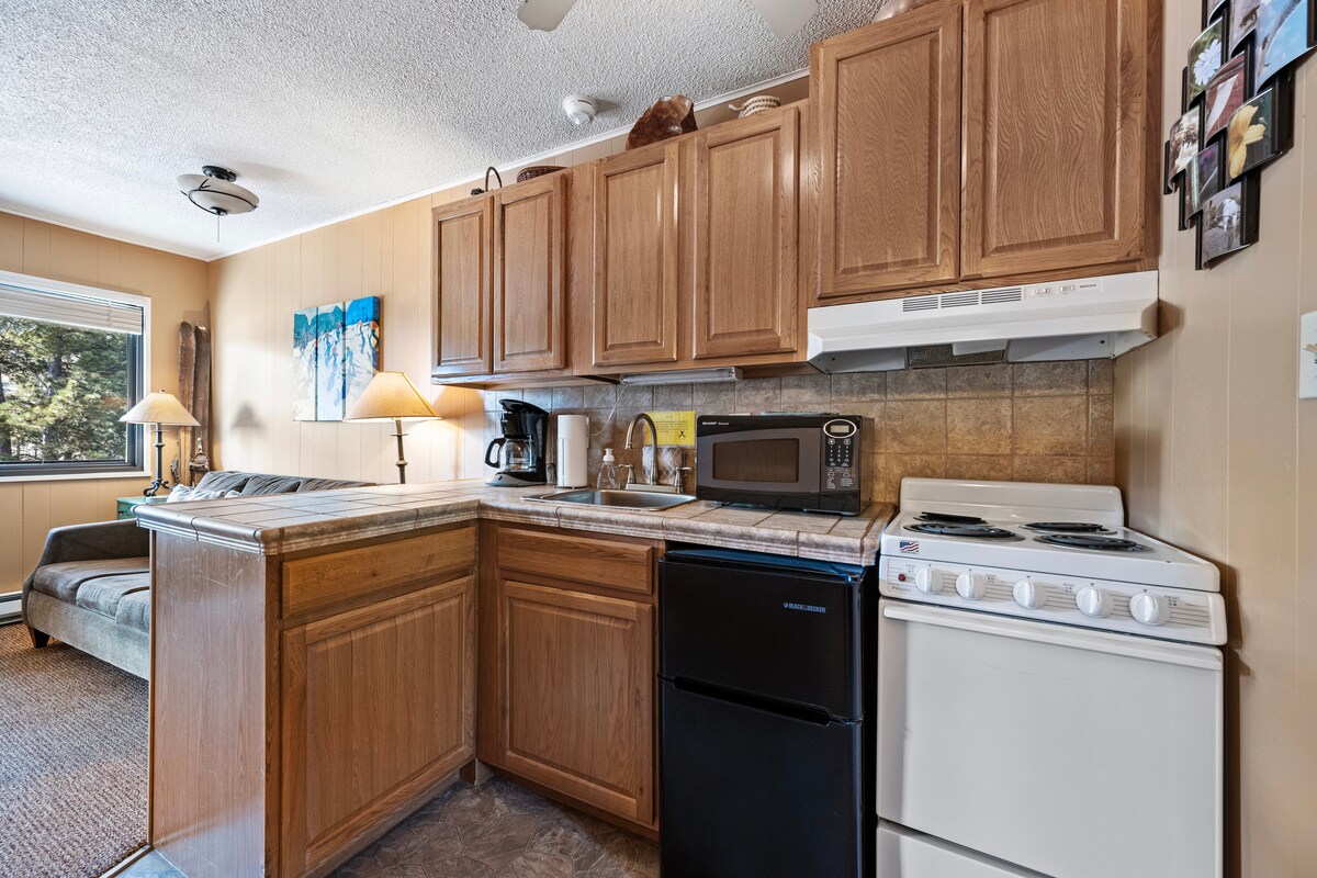 A8- Bright lodge feel 1bd/1ba walk to ski, w/view