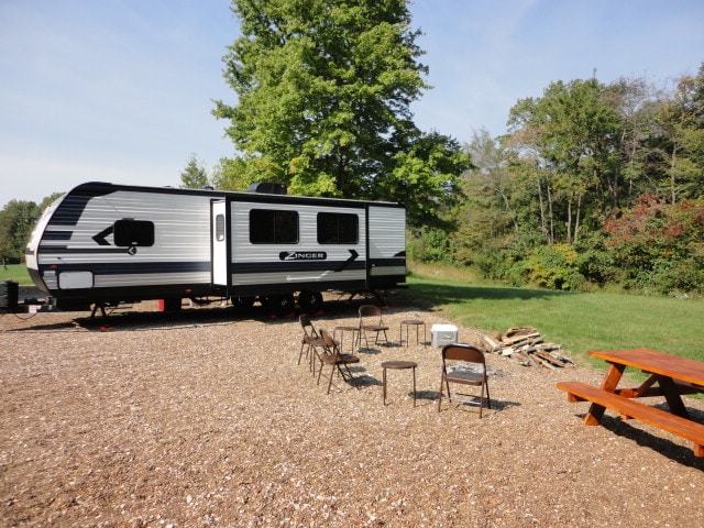 Umahamba-nendlwana olungiswe kabusha ngamamitha angu-40. Umahamba-nendlwana upakwe ngemuva kwendlu yethu ngemuva kocingo lwethu lwephrayivesi phezu kwesigodi sehlathi. Jabulela isethingi yezwe ngenkathi usene-wifi engu-150 mb. Imizuzu engu-5 ukuya e-Knightstown, imizuzu engu-45 ukuya e-Indianapolis nemizuzu engu-10 ukuya e-I70. Umahamba-nendlwana une-heater yamanzi ashisayo engenawo amathangi, umshini wokuwasha izitsha, umshini wokuwasha nowokomisa. Usofa wegumbi lokuphumula usonga phansi embhedeni nasekamelweni likamatilasi womoya. Maphakathi nendawo yokukhempa kune-futon esonga phansi embhedeni.