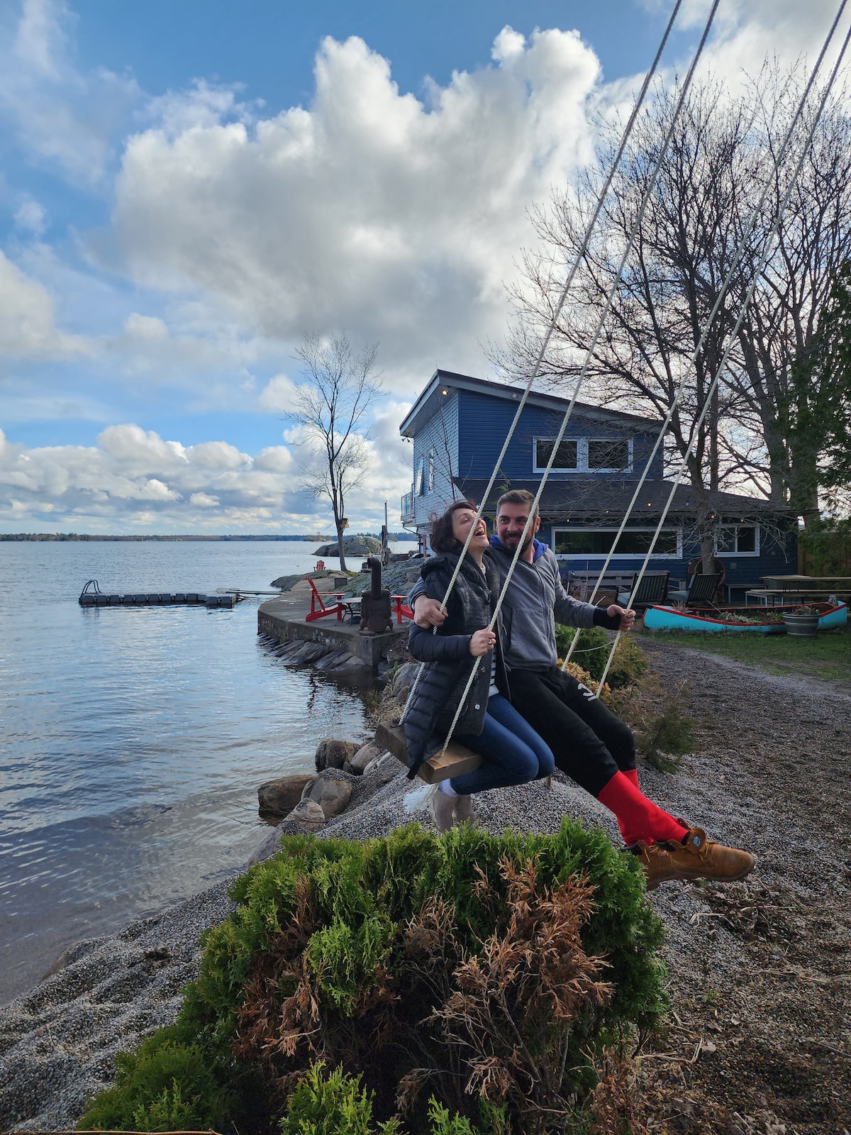 Welcome to Hally’s Cove Riverside Retreat! A fully loaded 4-season escape on the Trent Severn River! Dock your boat with shore power ⚓, lounge in the over-the-water hammock 🌅, relax in the panoramic sauna 🧖♀️, or play in the games room 🕹️ (ping pong, basketball, air hockey plus lots more). Enjoy the 4-hole putting green ⛳, 6 kayaks 🛶, lily pad and custom landscaped Muskoka rock fire pit 🔥. Summer Bonus - Mosquito-sprayed for extra comfort! IG to see more photos: @hallys_cove