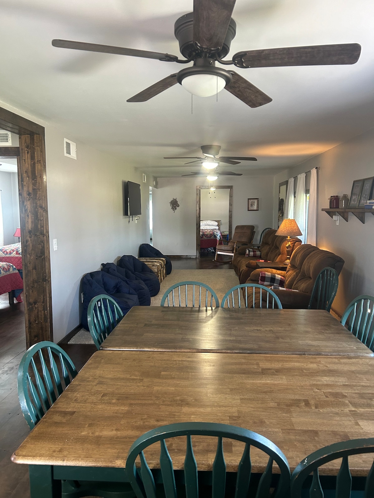 Leli khaya lisepulazini lomndeni e-Spencer County, e-IN, imizuzu engu-15 nje ukusuka eHolide World. Inezindawo ezivulekile ngaphakathi nangaphandle ukuze umndeni nabangane bachithe isikhathi esimnandi ndawonye. Sikumema ukuthi ubuke izinkomo zidla futhi ubuke ukushona kwelanga kusuka emphemeni ongemuva. Nakuba ikhaya lisemgwaqeni onguhlalu lwasemaphandleni, sinenhlanhla yokuhlinzeka nge-intanethi ye-fiber/i-WiFi namanzi edolobha. Le ndawo ilalisa ngokunethezeka abantu abadala abangu-14. Izinsana ezingu-3 ezingabalwa ekubeni khona. Sinikeza ukuhlala kobusuku obubodwa