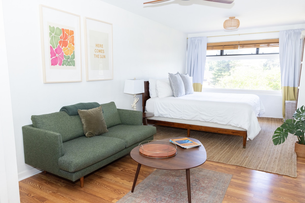 Le condo ekhanyayo nomoya ebuyekeziwe iyindawo ekahle yokuhlala e-Sunny Po 'iipū yabantu abashadile, abathandi be-honeymoon + imindeni emincane. Indawo yokuhlala evulekile ihlanzekile futhi yamukelekile nge-boho vibe esogwini, futhi uzojabulela ukubukwa kolwandle okuhle + kwengadi kusuka ku-lanai enkulu esezingeni eliphezulu. Indawo ingcono kakhulu - ukusuka endlini ephambi kolwandle, ungaya emabhishi amaningana ahamba phambili ogwini oluseningizimu, ikhofi lendawo, izindawo zokudlela, izitolo, nendawo yokubhukuda emangalisayo emizuzwini embalwa.