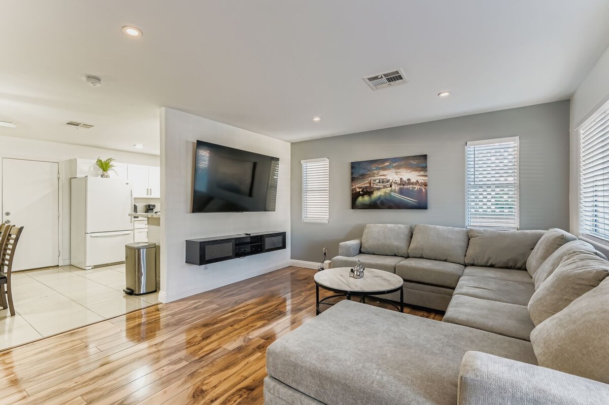 Short Term Rental in this property is operated with a CLARK COUNTY SHORT TERM RENTAL LICENSE. Located at the center of the city which is close to everywhere. No garage access. Driveway fits 2 vehicles. Free street parking included. We provide Hulu, Disney +, Peacock & Paramount on our TV. Driving Distance: To the Strip: 15 minutes To Summerlin: 10 minutes To the airport: 15 minutes