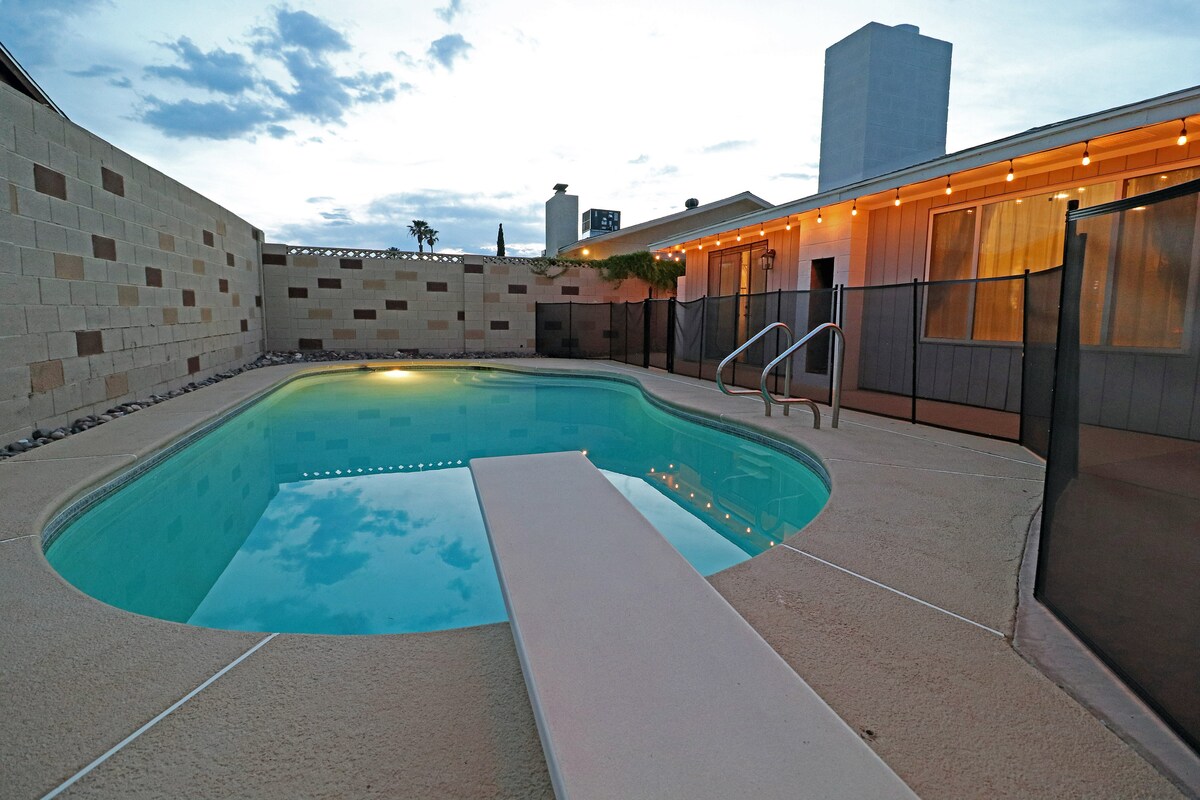 Siyakwamukela endlini ejabulisayo yase-Vegas! Kuhlanganisa izenzo zangaphakathi njengegumbi lemidlalo nendawo yokubhukuda /imidlalo yangaphandle yokokuzithokozisa okungenakulibaleka ngaphandle kwesidingo sokuphuma ekhaya. Itholakala emizuzwini engu-15 ukusuka emgqonyeni.