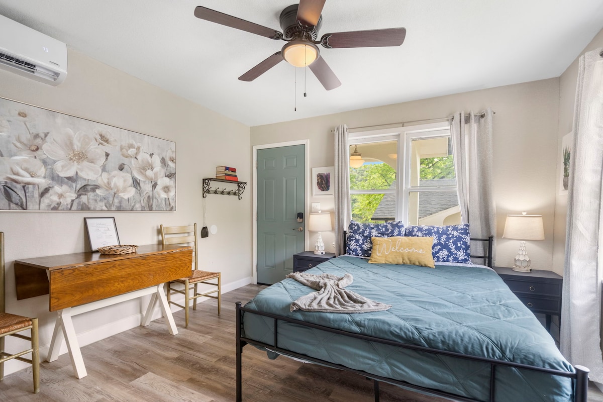 Siyakwamukela ku-Suite Sunshine B, indawo yakho yokuphumula ephakeme enkabeni ye-Springfield's desirable University Heights. Igumbi elivulekile, elizimele linekhishi eligcwele, igumbi lokugezela elikhulu elingenalutho, nekamelo lokulala elinokuthula eliklanyelwe ukuphumula nokungcebeleka. Phumula kuvulandi ombozwe kahle noma uthokomale ngasemgodini womlilo endaweni yakho yokuphumula ephrayivethi engemuva kwegceke. Kungakhathaliseki ukuthi uvakashela ibhizinisi, imicimbi yasekhampasini, noma iholide eliphumuzayo, uzojabulela izinto ezicatshangwe kahle, ukunethezeka okuyisitayela, nendawo enokuthula.