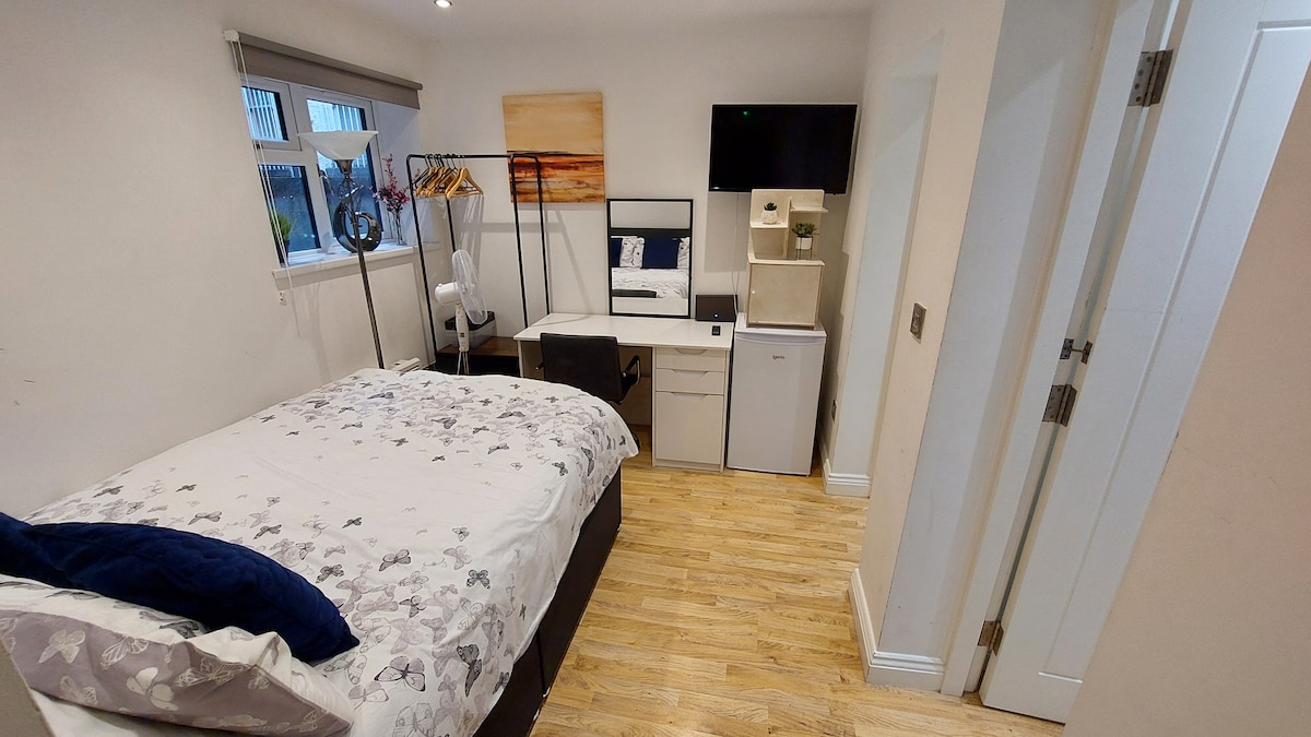 Charming Two-Storey Townhouse with King Bed & Cozy Living Space Welcome to your home away from home! This unique two-storey space offers a comfortable and flexible setup, perfect for couples, small families, or solo travelers looking for a relaxing stay. The house is complete with a smart TV, Amazon Alexa Echo Smart screen and smart Hive thermostat to control the temperature of the house during your stay. (3 Adults max or 2 Adults and 2 children)