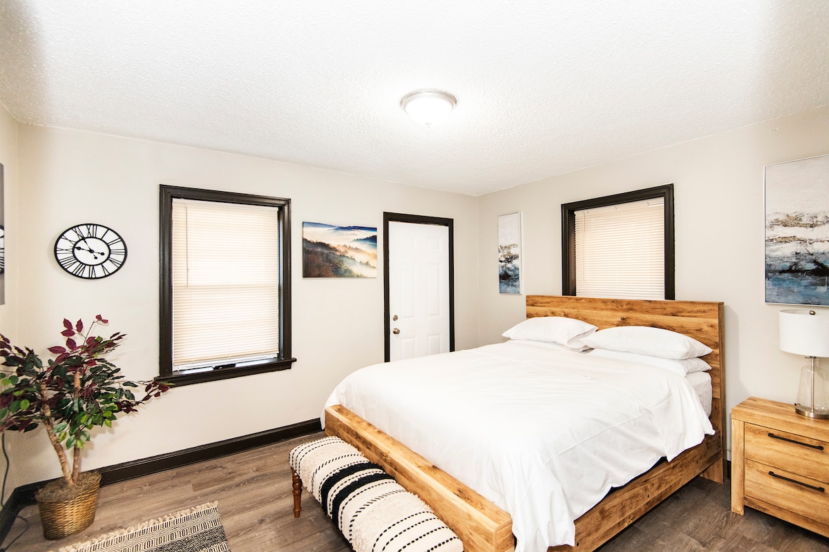 Siyakwamukela kuleli khaya elithokomele elikude nekhaya, eliklanywe kucatshangelwa isivakashi se-Airbnb! Imizuzu ukusuka enkabeni yedolobha i-Kirkwood nemizuzu engu-20 ukusuka enkabeni yedolobha i-STL ilungele labo abahamba ngomsebenzi noma ubumnandi! Izivakashi zinikezwa i-inthanethi, amalineni asehhotela, nemvume yokuwasha. Hlala futhi ujabulele ukupheka ekhishini, uphumule egumbini lokuphumula, futhi uphumule emakamelweni akho okulala aphefumulelwe ihhotela. Le ndlu yashintshwa yasuka efulethini elihlanganyelwayo yaba iyunithi ephelele ngo-August 2024. Ukuphawula kwangaphambilini kwenzelwe ikamelo elilodwa.