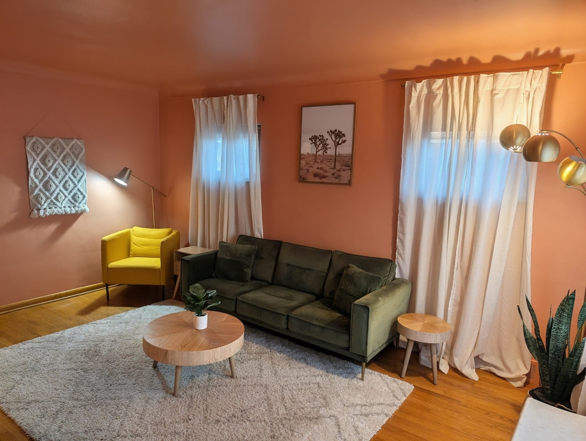 Jabulela ukufinyelela okugcwele kule ndlwana ethandekayo, eyaziwa nangokuthi “The Blue Abode.” Yindlu encane enegceke elikhulu elingemuva elibiyelwe, nezindawo ezingu-2 zokupaka ezingekho esitaladini ezifakwe eceleni kwe-Sublette Park engama-acre angu-15 e-Southwest Gardens, ebangeni lokuhamba ngezinyawo ukuya ezindaweni zokudlela nezitolo ku-The Hill. Isanda kubuyekezwa ngokulungiswa kwesimanje kanye nefenisha enhle, leli khaya elithokomele elilungele izilwane ezifuywayo (imali engu- $ 100 yezilwane ezifuywayo) lilungele umuntu ohamba yedwa futhi linendawo eyanele yezivakashi ezingaba ngu-4. Ukugeza umzimba ne-shampoo dispenser.