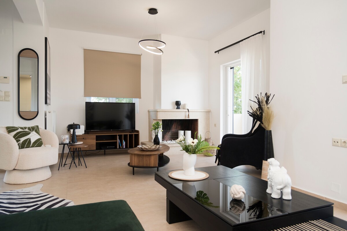 I-villa yethu, eyingxenye ye-CretanRetreat, inikeza ukubuka okuhle endaweni enokuthula, efanele imindeni, imibhangqwana, nabahloli. 98 m², imizuzu engu-25 ukusuka e-Heraklion, imizuzu engu-15 ukusuka e-Knossos, imizuzu engu-30 ukusuka esikhumulweni sezindiza. ! Amakamelo okulala angu-3 Amagumbi okugezela angu-2 Imibhede emikhulu engu-2 Ama-Balconi angu-4 % {smart Ingadi ! Ukupaka endaweni ✭“Enye ye-Airbnb ehamba phambili esike sahlala kuyo! Indawo enhle kakhulu enezindawo ezinhle ezibabazekayo futhi enokuthula kakhulu, izungezwe amasimu omnqumo. I-Villa inezici eziningi futhi isendaweni ekahle kakhulu yokuvakashela i-Knossos ne-Heraklion”
