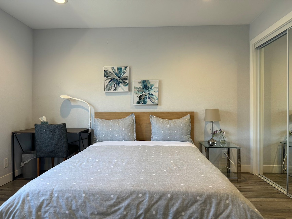 Siyakwamukela efulethini lethu elisanda kulungiswa elinekamelo elilodwa eliqhele ngamakhilomitha angu-2 ukusuka eStanford. Leli fulethi likanokusho linombhede omkhulu, i-TV engu-55" 4K, ne-Wi-Fi esheshayo ukuze uqinisekise ukuthi uhlala kamnandi. Kungakhathaliseki ukuthi uvakashela i-Stanford noma indlunkulu ye-Meta yohambo lwebhizinisi lwesikhashana noma ukuhlala isikhathi eside, ifulethi lethu eliphakathi nendawo linikeza inhlanganisela ekahle yokunethezeka nokulula. Sibeka phambili isevisi esezingeni eliphezulu nokwamukela izivakashi, futhi siyajabula ukukubungaza maduzane!