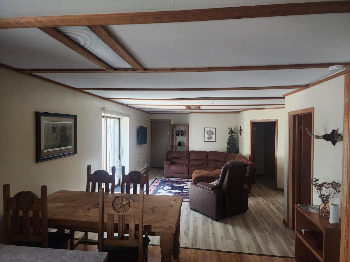 Indlu eyakhiwe ngamapulangwe emgwaqweni omuhle, ophrayivethi futhi othulile wokugcina. . Konke okudingayo. Umshini wokuwasha nowokomisa. Indawo ezungezile enokuthula. Cishe umzuzu we-25 wokushayela e-Minot lapho kunezindawo ezinhle zokudla nokuthenga. Amamayela angu-5 ukuya e-Lake Darling Nature Preserve. Ukushayela ihora elinguhhafu ukusuka e-Des Lacs National Wildlife Park Scenic Backway kanye ne-Goosefest e-Kenmare. Izinhlobo ezingaphezu kuka-250 zezinyoni, ezinjengama-raptors kanye ne-waterfowl. Ubuhle obuningi bemvelo.