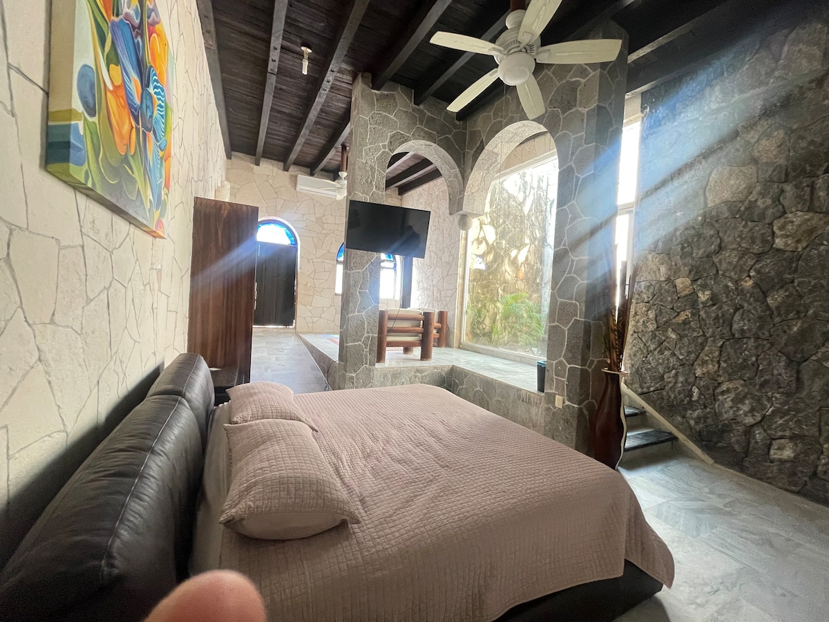 Alojamiento en segura privada, 1 habitación, baño, cocina de exterior y cancha con un mural increíble Ofrecemos diversas opciones de alojamiento considerando el número de huéspedes y cuartos que desean utilizar, para adaptarnos a su presupuesto.