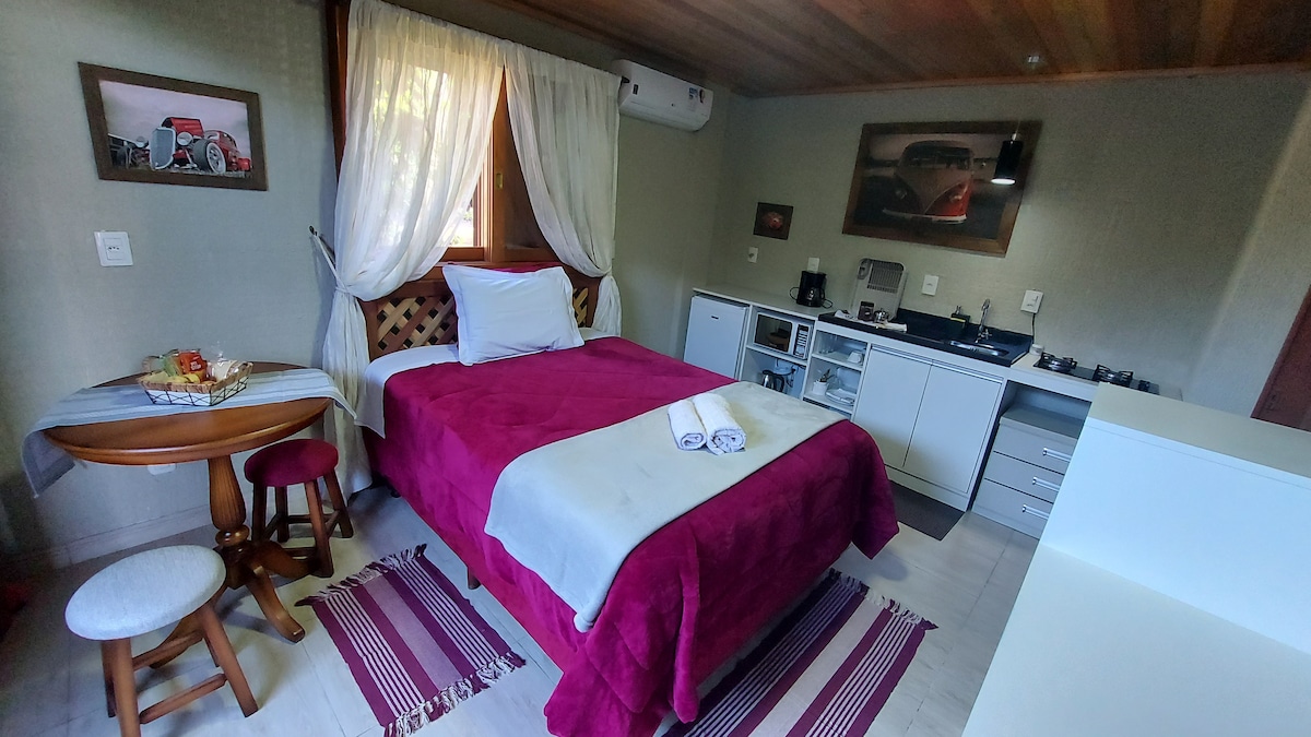 Indawo isendaweni engamamitha angu-1,100 ukusuka enkabeni yedolobha i-Gramado endaweni ejwayelekile nethule kakhulu. Inegumbi lokugezela eliphrayivethi, umshini wokomisa izinwele, i-ayina, i-TV enamashaneli endawo, ikhishi elincane elinefriji, ifriji, i-microwave, umshini wokwenza ikhofi, iketela likagesi, umshini wokwenza isangweji nazo zonke izitsha; asikho ISITOFU. Indawo engenasikhunta futhi ehlanzekile.