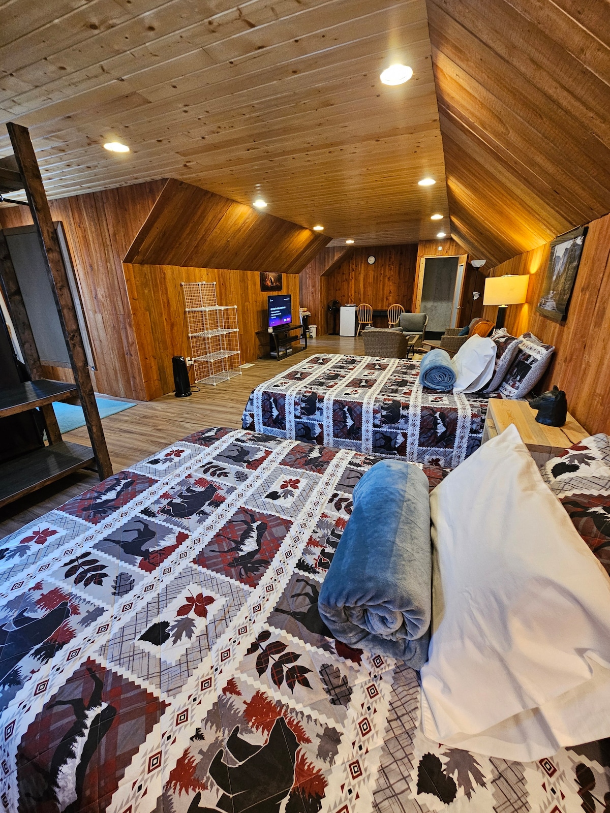 Xhuma kabusha nemvelo kule ndawo yokuvakasha engenakulibaleka. Jabulela ama-acre angu-43 ephrayivesi namakhilomitha angu-1.5 emizila yokuhamba ngezinyawo. Kukhona ukuqwala izintaba okumangalisayo nokuwela imizila yokushushuluza eqhweni lezwe ehlathini lesihlabathi eliseduze. Ngamakhulu amamayela emizila ye-ATV ne-snowmobile ongayihlola, izokushiya unezinkumbulo eziningi ezinhle. Le ndlu eyakhiwe esihlahleni ilungele imibhangqwana nemindeni ukuba ijabulele! Umpheme osezingeni eliphansi uhloliwe ukuze ugcine izimbungulu ziphuma ngenkathi uphumula kubhavu wamanzi ashisayo wabantu abangu-7.