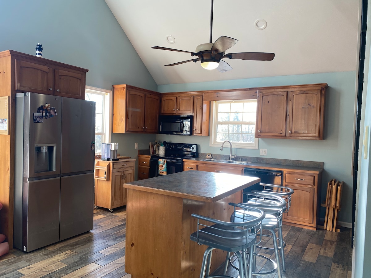 Indlu eyakhiwe ngamapulangwe kanokusho, eyenziwe ngesandla enekhishi elimnandi iyindawo ephakathi nale ndlu enhle kakhulu! Indlu eyakhiwe ngamapulangwe ifaka ngaphezu kuka-1,000 sq ft ene-loft evulekile, umlilo ogcwele ovuthayo we-Wolf, izinto zikagesi ze-premium ze-Wolf ne-SubZero, ama-countertops asekhishini e-granite, amakhabethe aqokiwe, izindawo zaphansi zezinkuni ezivulekile, umpheme obomvu we-400 sq ft umsedare, iminyango ye-dear barn ngokwezifiso ezingeni eliphansi futhi okuningi, okuningi.