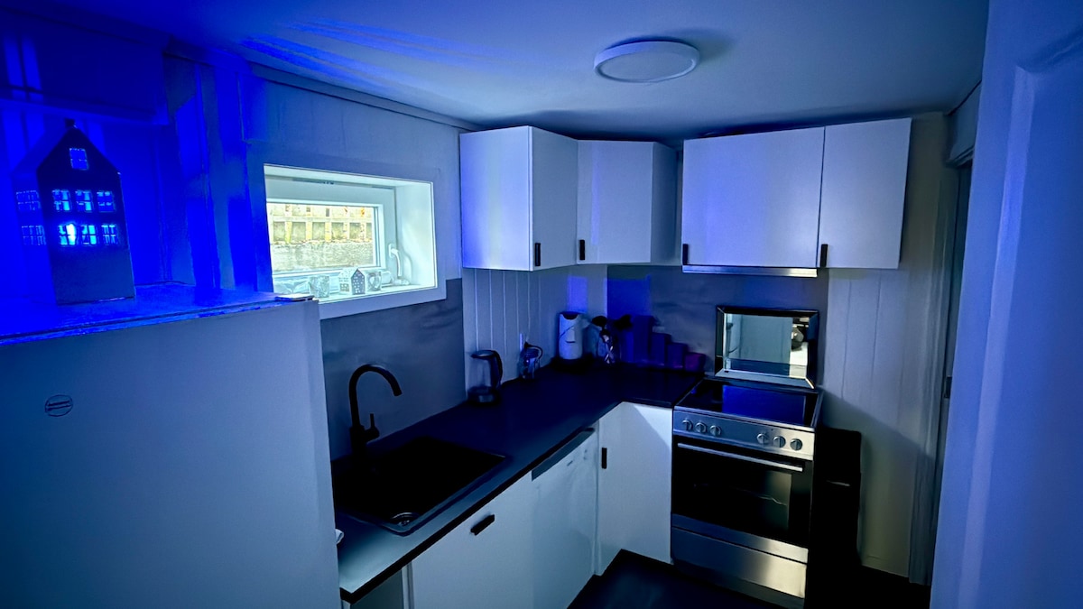 🌟 The entire apartment is at your disposal – with bed linens, towels, Wi-Fi, and all basic essentials included. Parking is available, and there is step-free access to the apartment. 🏡 Make yourself at home and enjoy your days and evenings in the heart of Leirvik, with cafés, shops, a gym, and restaurants just a stone’s throw away. 🎨 The apartment is decorated with wall art, beautiful pictures, and sculptures, creating a unique and welcoming atmosphere.