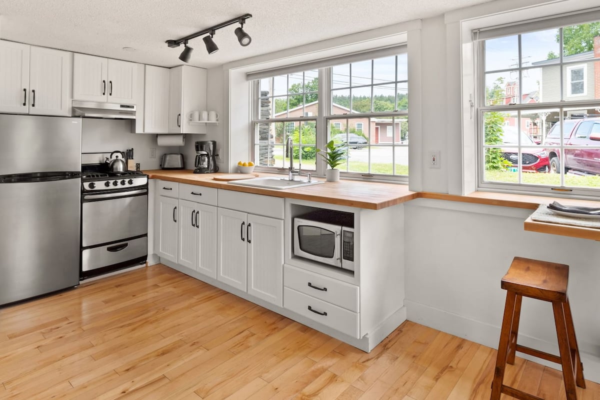 Ithokomele kule ndlu entsha sha, nenye yezindawo ezinhle kakhulu e-Stowe. Uhlala eceleni komfula, unezinyathelo zokuya edolobheni lase-Stowe bars nezindawo zokudlela. Thola isithuthi sentaba kuze kufike endaweni yokushushuluza eqhweni. Hamba ngebhayisikili endleleni ye-Rec edolobheni. Phumula kusofa omkhulu eceleni kwendawo yomlilo ye-propane. Beka i-velvet othandekayo ngencwadi, kuyilapho ulalela izikhulumi ezizungezile ze-Sonos. Jabulela ekhishini elisha/ ubuke i-4K TV, noma ulalele ukuphuthuma komfula ngezansi ngenkathi ukosa uvulande ongemuva.