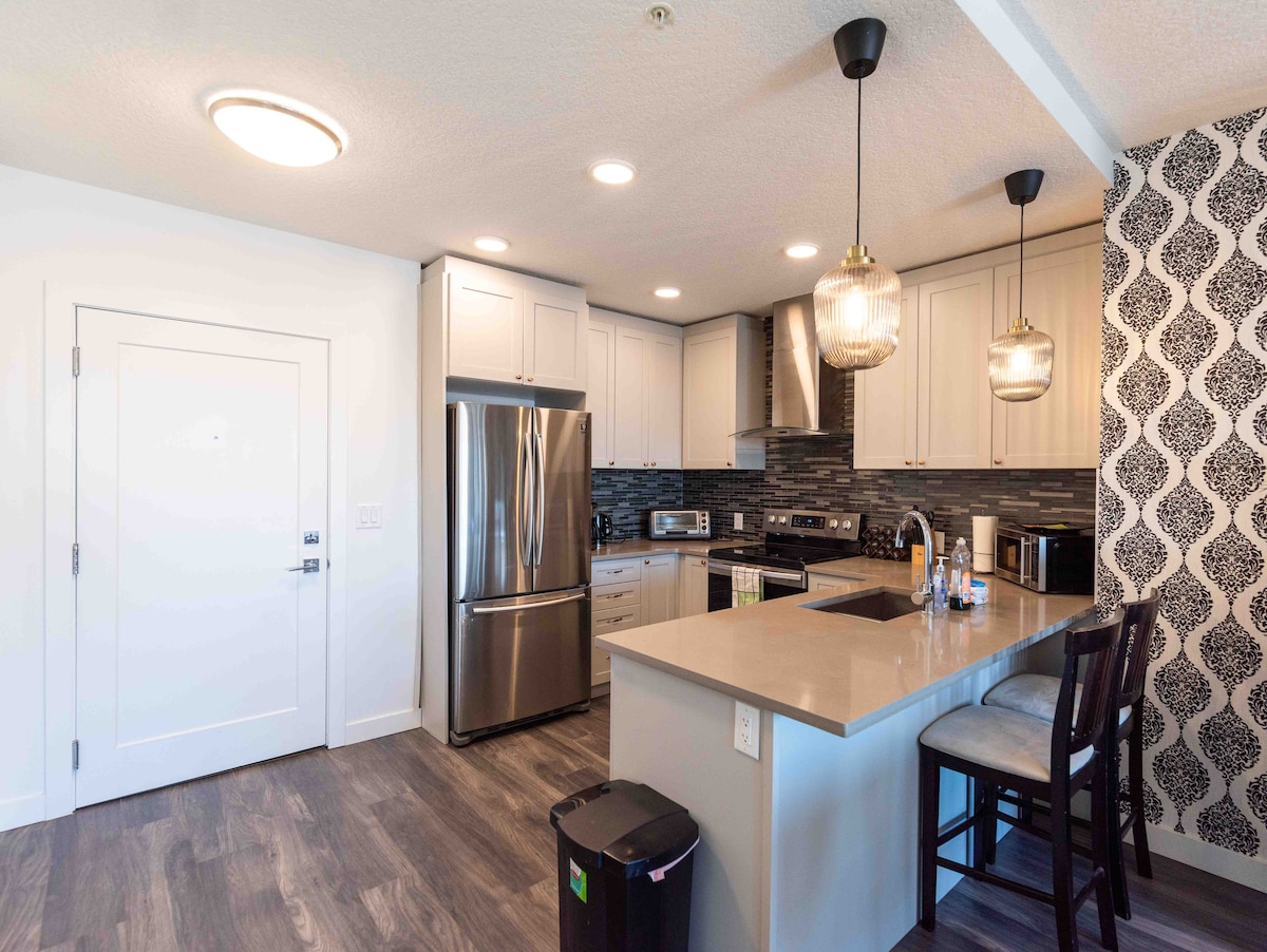 Siyakwamukela ku-condo yethu esenkabeni ye-Edmonton's ICE District. Njengoba inamaphuzu ahamba ngezinyawo asezingeni eliphezulu angu-97 kwangu-100, kumane kuyizinyathelo ezimbalwa ukusuka e-Rogers Place, e-City Centre, nase-Oliver Square. Futhi, uzoba namabhulokhi amabili kuphela enyakatho ye-Jasper Ave, unikeze izindlela eziningi zokuthenga nezokudlela. Le fulethi ilungele izivakashi zesikhashana ezifuna ukujabulela ngokugcwele izinto ezikhangayo zase-Edmonton. Jabulela konke idolobha elikunikezayo, khona kanye emnyango wakho!