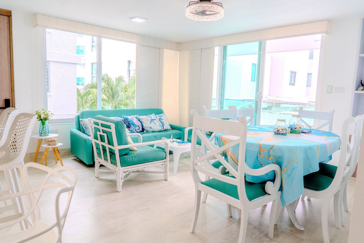 Phila izinsuku zakho zokuphumula e-Coveñas! Amamitha angu-80 kuphela ukusuka ebhishi (ngaphansi kwemizuzu engu-5 uhamba ngezinyawo) leli fulethi liklanyelwe ukukunikeza ukunethezeka nokungcebeleka. Jabulela indawo yokubhukuda ephrayivethi ngezikhathi ezingenakulibaleka, nendawo yokupaka ephrayivethi futhi yamahhala. I-Coveñas ikulindile ngokushona kwelanga okungenakulibaleka, ukudla kwayo kwasogwini kanye nendawo ethulile, ekahle kakhulu ukunqamula ukuxhuma. UNGABE USACABANGA ngakho, leli pharadesi liyikho konke okudingayo. BHUKHA NAMHLANJE futhi uyenze ibe ngeyakho!