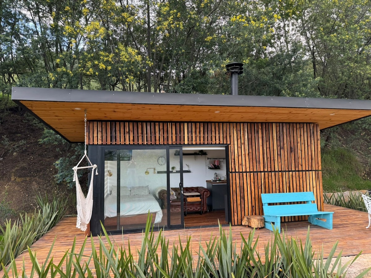 casita en la montaña,mini casa de 12mts cuadrados con vista directa al mitico cerro LAS TRES VIEJAS lugar donde transitaron los Muiscas y se desarrollo la leyenda del dorado, un espacio diseñado para desconectarte del ruido y reconectar con la naturaleza la historia y la tranquilidad absoluta,disfruta de un mirador360 con vista a las majestuosas montañas, también una minicasita al revés para la mejor foto y recuerdo de tu estadía, a tan solo una hora de Bogotá, lugar perfecto para una escapada.