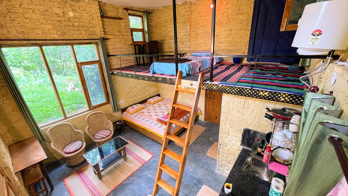 Indlu ezimele engu-1 BHK ezungezwe Izihlahla ze-Devdar. Ingaphakathi lenziwe ngokhuni oluhlanzekile lwe-Devdar. Inendawo yomlilo yangaphakathi nawo wonke amasevisi ekhishi - i-Microwave, i-Friji, i-RO Water Purifier, i-Electric Kettle, i-Toaster, i-Cutlery, i-Gas, izitsha zasekhishini, i-Mixer Grinder. I-geyser yokugeza , I-WIFI nogesi Isipele sikhona. Ayikho imali yokuhlanza futhi Umlilo wokubasa uyakhokhiswa