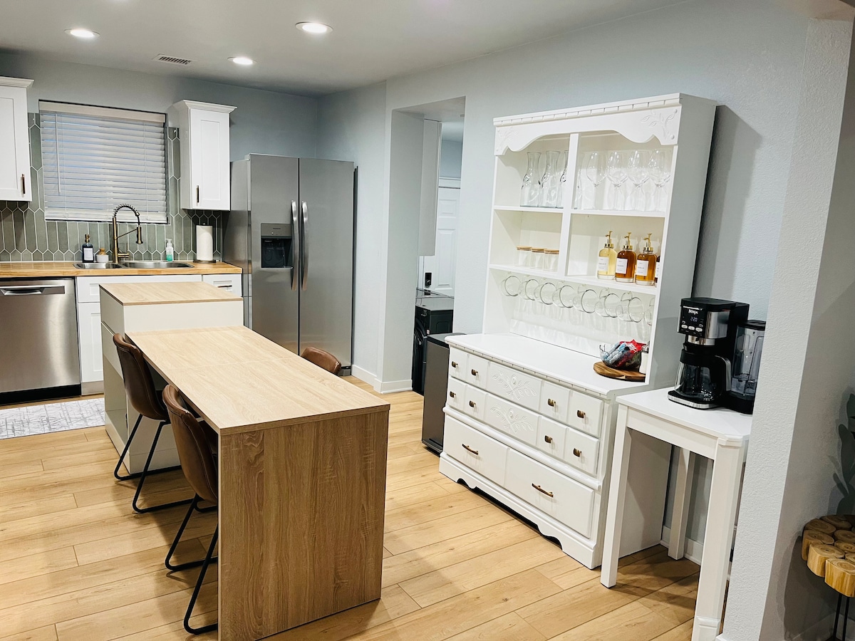 Ikhishi elisanda kulungiswa lifakwe ngokuphelele ngamatafula e-quartz nezinto zokusebenza ezintsha zensimbi engagqwali. Umshini wekhofi yi-kcup. Igumbi lomndeni line-smart tv yokungcebeleka nokuzijabulisa. Ikhaya lethu lilungele izinja futhi linegceke elibiyelwe ngokuphelele nendawo enhle yovulande. Eduze Nezindawo Ezikhangayo -2 min drive to stand on the corner, down town, and La Posada -3 miles to Clear Creek Imizuzu engu -10 ushayela Ugwadule olupeyintiwe -10 min drive Homolovi Ruins -60 min petrified Forest -45 min Flagstaff -60