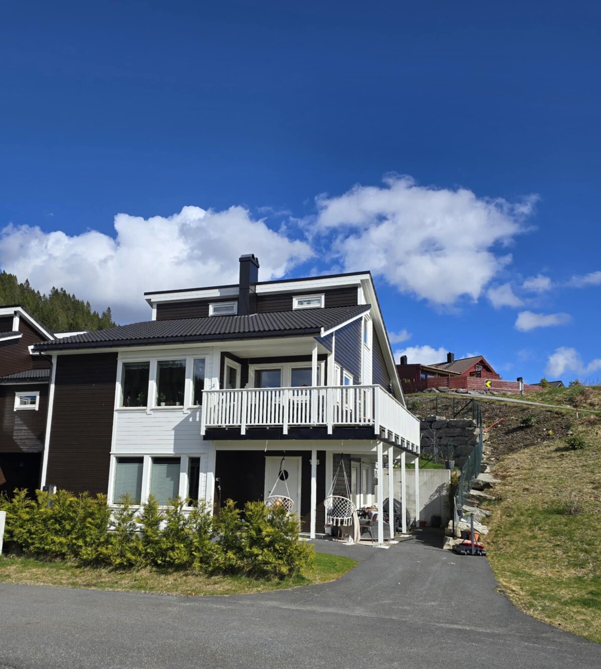 Indlu yezivakashi enobungane enamakamelo okulala amathathu, amagumbi okuhlala amabili nomthamo wezivakashi ezingaba ngu-12. Indlu inekhishi elinakho konke, indawo yokudlela, indawo yokubasa ne-Wi-Fi. Igumbi lokuphumula elisophahleni eline-TV. Ngaphandle kwethala elikhulu, ubhavu wamanzi ashisayo, indawo yokosa, utshani obukhulu, i-trampoline nezindawo ezinhle. Kulungele imindeni namaqembu unyaka wonke. Umshini wokuwasha (NOK 100 ngokuthwala ngakunye). Ukushaja imoto kagesi kungu-NOK 200 ngokushaja ngakunye.