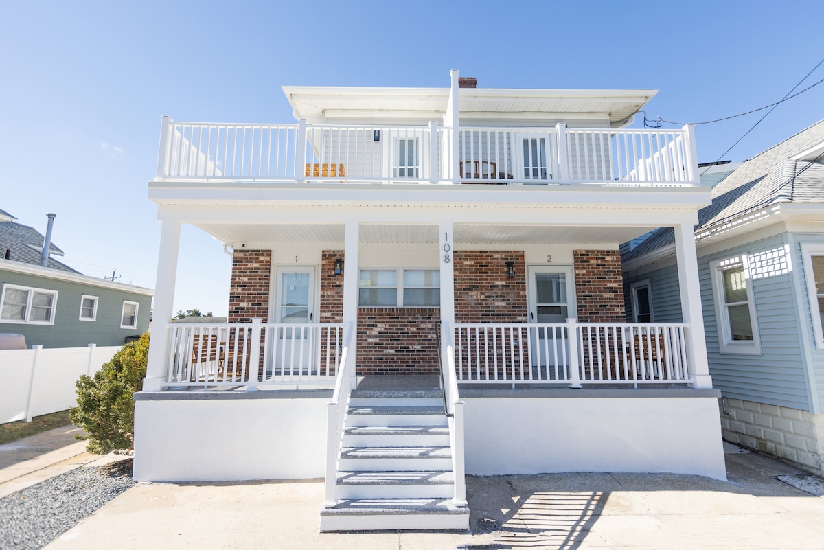 I-Jersey Shore igugu elifihliwe! Amabhlogo angu-4 avela ebhishi! Yenza leli fulethi elithokomele iholide lakho lasebhishi. Ikhishi eligcwele w/ i-microwave ne-Keurig. Indawo yokungena egcekeni elingemuva yangasese. Ukungena esitezi sesibili ukuze kube lula futhi kube lula. Ibanga lokuhamba NGEZINYAWO ukuya emgwaqeni & IBHISHI! Isitolo se-Dairy Delite Ice cream & Jellyfish Cafe kokubili kuqhele ngebhulokhi. Sebenzisa I-GRILL yethu ku-BBQ! Ukuthula, indawo ezungezile yomndeni. INDAWO YOKUPAKA YAMAHHALA. Sebenzisa amabhayisikili ethu angu-2 nezihlalo zasebhishi ezingu-2 ukuze uhlale! Yenza izinkumbulo zakho ze-Jersey Shore efulethini lethu elisebhishi!
