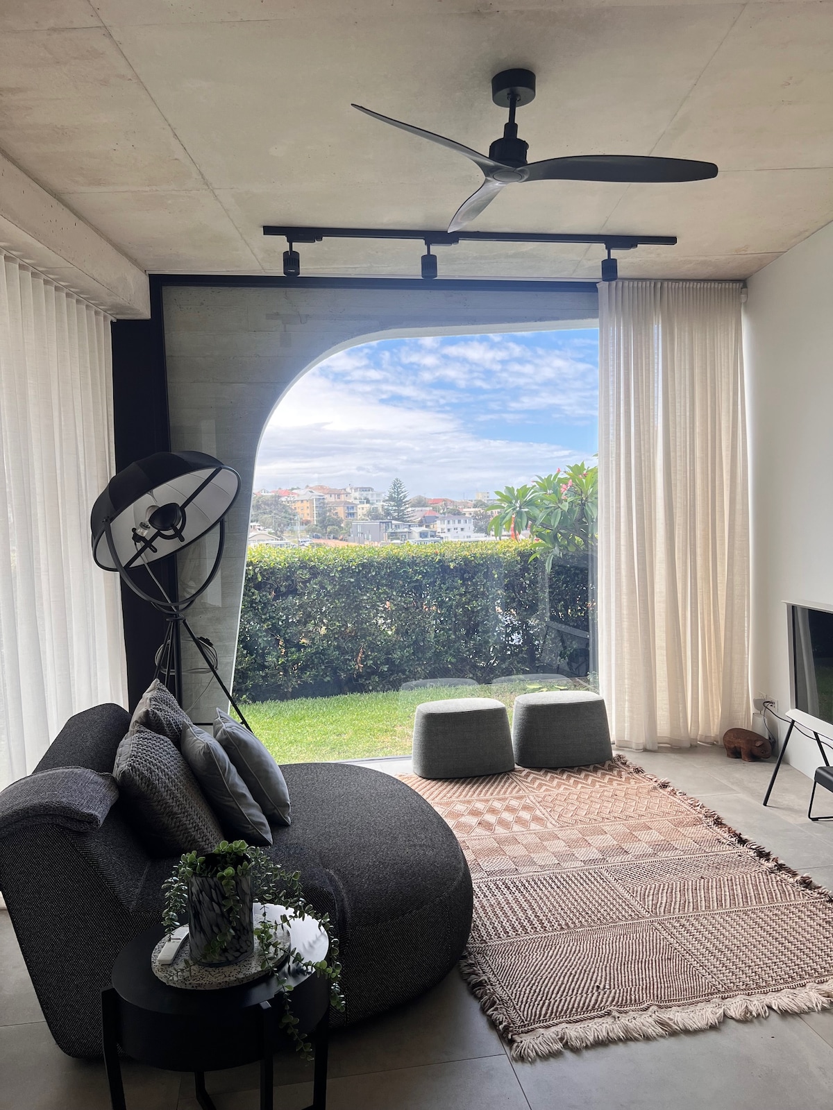 Indawo enhle imizuzu engu-10 uhamba ngezinyawo usuka ebhishi lase-Bondi nemizuzu engu-5 uhamba ngezinyawo usuka ebhishi lase-Tamarama. Itholakala ezingeni eliphezulu lebhulokhi yesitayela esidala yabantu abayisithupha, leli fulethi elithulile, eliphrayivethi nelilungiswe ngesitayela libheke uhambo oludumile lwase-Bondi oluya e-Bronte ngasogwini. Izindawo ezinhle zolwandle nesibhakabhaka kuzo zonke izindawo zokuhlala eziyinhloko. Uvulande wengilazi ophansi kuya ophahleni unikeza izindawo ezishintsha ngokuqhubekayo ngesikhathi sosuku.