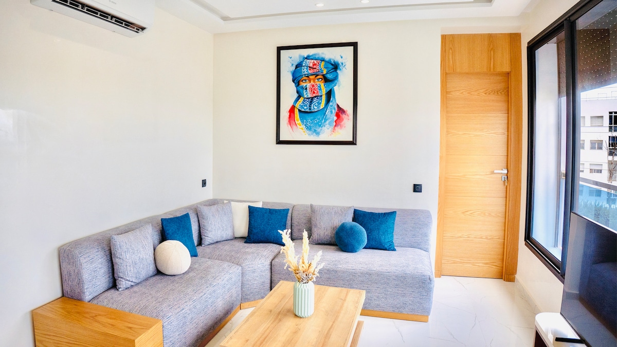 Dear Guest, - Sunny 2-bedroom apartment in Temara - 8 min from the beach, 20 min from Rabat - Up to 6 guests - Ideal for relaxation, travel, or remote work ( Family preferred ) – Check-in 15:00 PM, check-out 10:00 AM – No smoking, no pets, quiet after 22:00 PM – Unmarried Moroccan couples not allowed (local regulations) – ID/passport required at check-in (submitted to local authorities as required by law) – Free parking nearby
