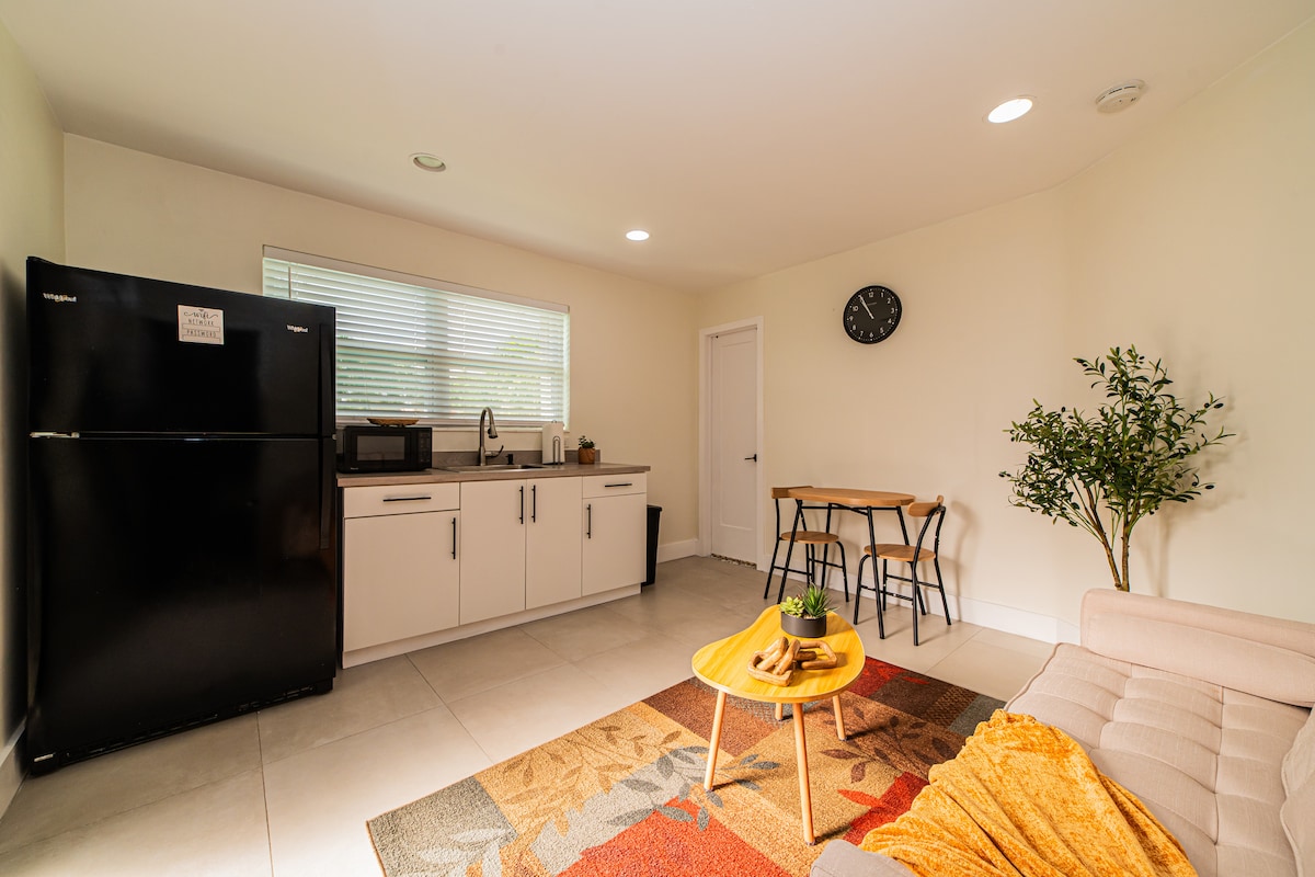 Istudiyo esiphumuzayo, esiphrayivethi, esinokuthula nesisendaweni ephakathi nendawo. Awuhlanganyeli indawo yakho nanoma ubani. Ibanga lokuhamba ngezinyawo ukuya ezindaweni zokudlela, esitolo esikhulu, esitobhini sebhasi, e-Gym nase-Florida International University. Eduze kalula ne-Miami Airport, Isibhedlela Sesifunda sase-Kendall, i-Dolphin Mall, i-TopGolf, i-Everglades Airboat Expeditions, i-City Place Doral ene-Fresh Market, izitolo, i-movie Theaters, i-Comedy Club, umculo obukhoma nokunye. Amamayela ayishumi nanye ukusuka e-Bayside nase-Wynwood Walls. Ibhishi? Imoto emfushane engamakhilomitha angu-15!