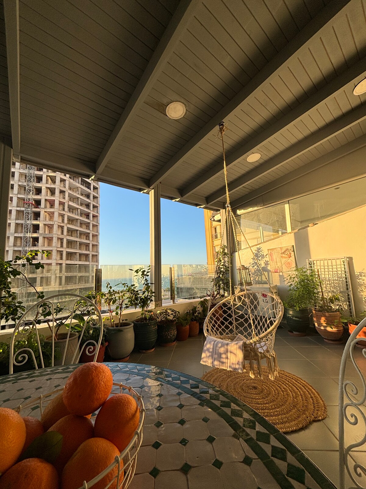 Ngiyakwamukela endaweni yethu engasogwini! Leli fulethi elibukekayo linikeza ukubuka ulwandle okuqondile, amamitha angu-20 ukusuka ebhishi, alungele ukuphumula okungapheli. Ngegaraji elivulekile lezimoto ezizimele. Indawo emaphakathi ikubeka eduze ne-Tanger City Center Mall kanye nesiteshi sesitimela, okwenza ukuhlola kube umoya. Le ndawo yokuphumula engenakulibaleka engasolwandle iyiphupho elizofezeka. Isitifiketi somshado siyadingeka kubantu abashadile base-Morocco noma uma omunye wabo engumMorocco.